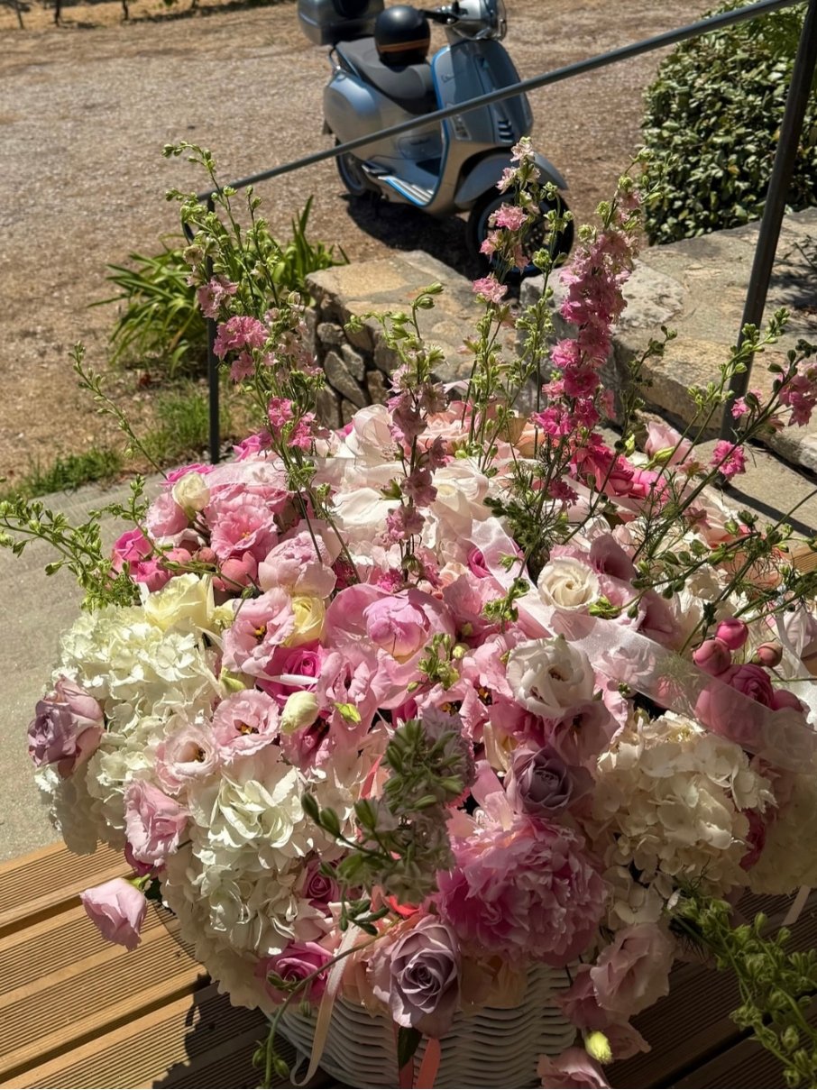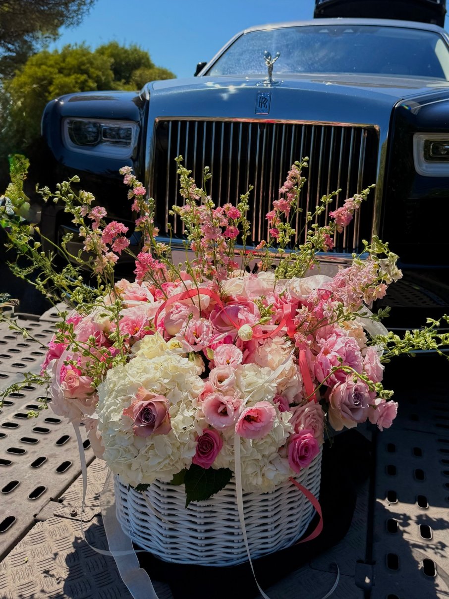 The base is crafted from rare Ecuadorian white hydrangeas 🙈