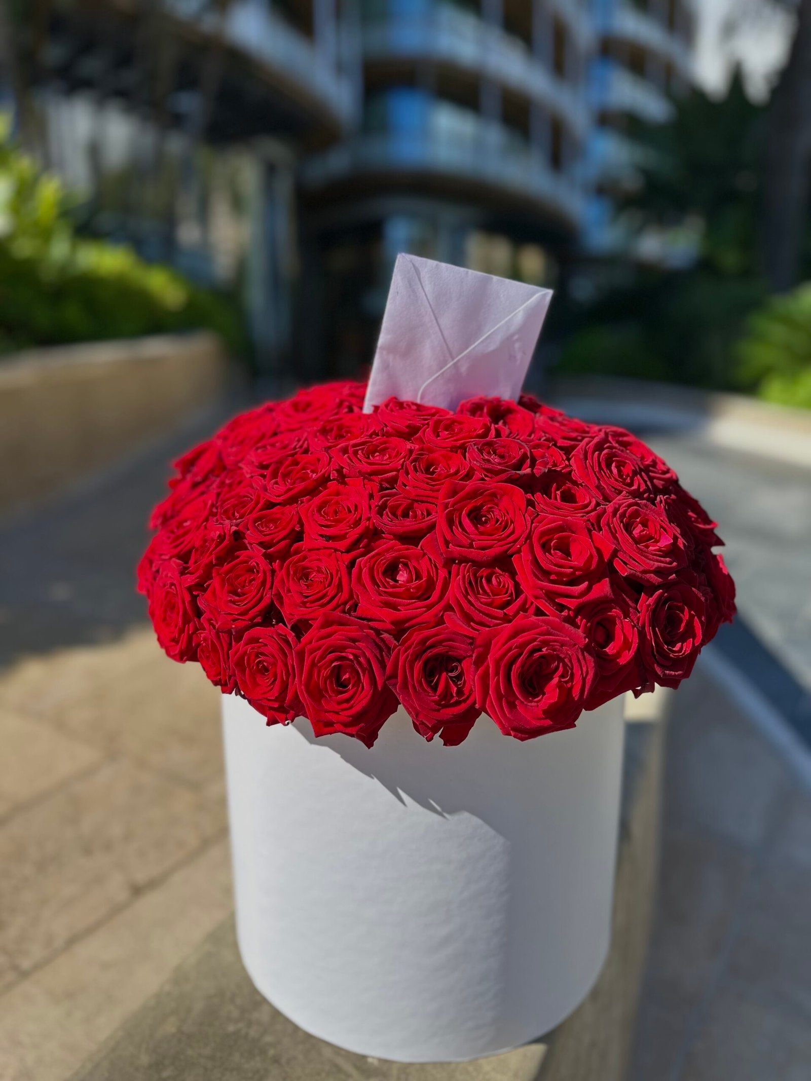 • Integrated hydration system to maintain the roses’ velvet texture and fragrance Each rose is inspected for the highest grade of color saturation and petal count. This arrangement is more than a gift; it is a sophisticated statement of romance, custom-made to ensure exclusivity and peak freshness.