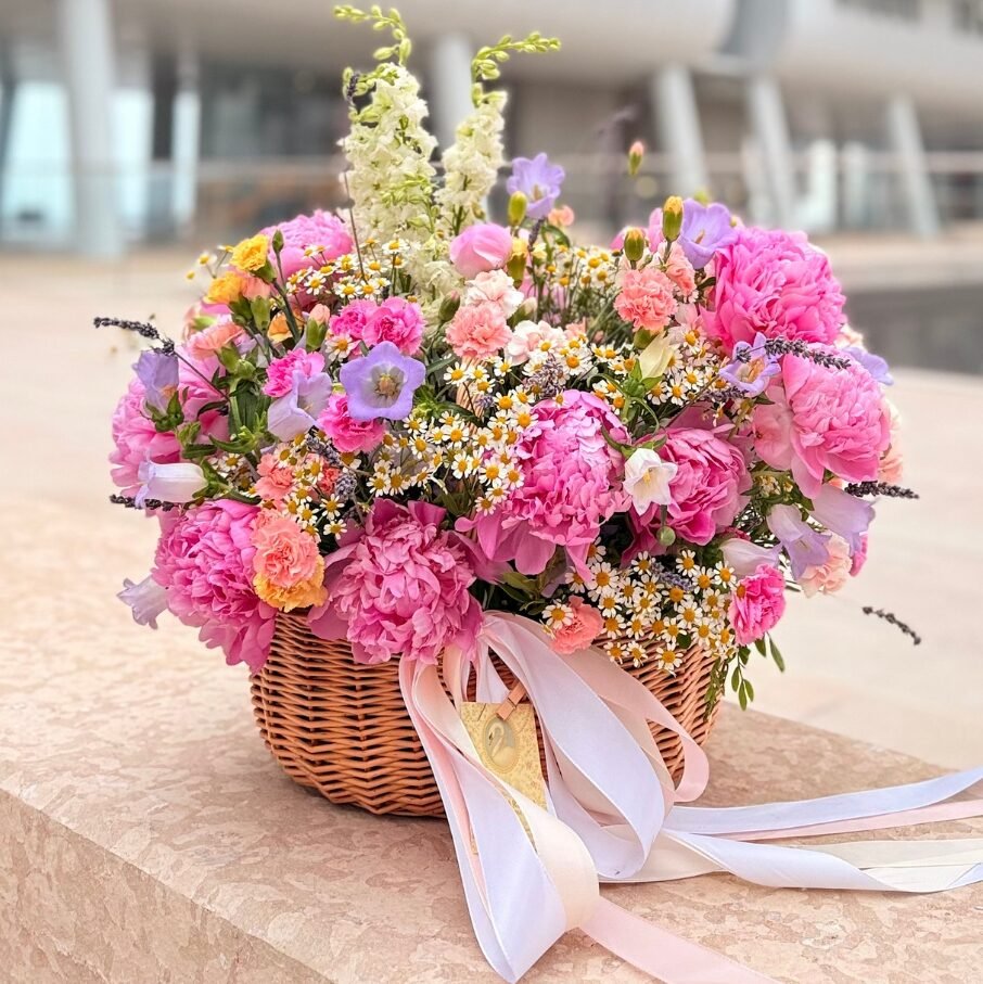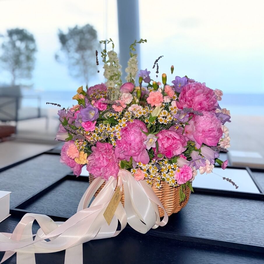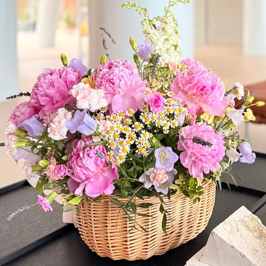 A signature L-size masterpiece capturing the untamed beauty and effortless charm of a sun-drenched garden. “Village Roi Style” is our premier wildflower basket—bespoke, seasonal, and crafted to celebrate nature’s rhythms through a refined “country-luxe” lens.